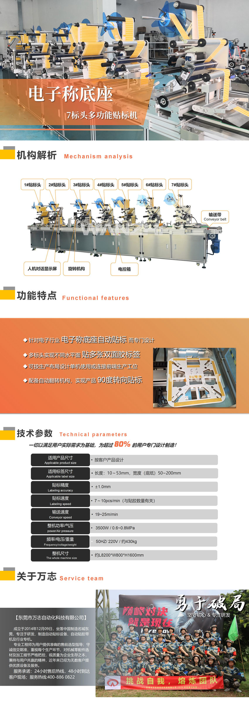基本用途 專用于電子稱底座表面貼標/3M膠標簽,配置7個標頭,含自動旋轉角度功能實現在不同位置貼多條膠的功能; 【萬志自動化】15年技術沉積,支持現貨/非標定制。自動貼多條雙面膠機,電子稱底座自動貼膠條,廠家直銷,咨詢電話:400-8860-822。
