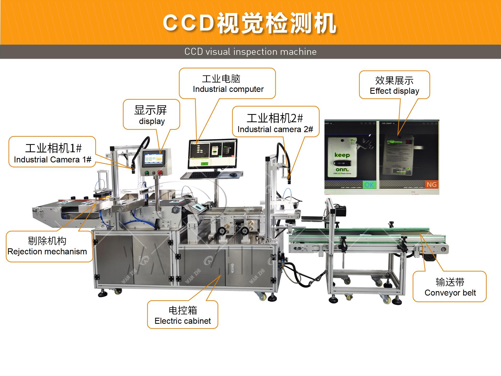 萬志CCD視覺檢測機適用于在不規則或要求高精密度貼合標簽的產品;通過使用先進的視覺識別技術和精密的機械操作,相機系統對產品進行拍照,根據預設的算法,自動判斷產品表面的形狀和大小,根據標簽設計進行定位、縮放和旋轉貼附標簽到對應的位置,采用的工業相機覆蓋30萬到1.51億像素,其貼標精度最高可達到0.1毫米。